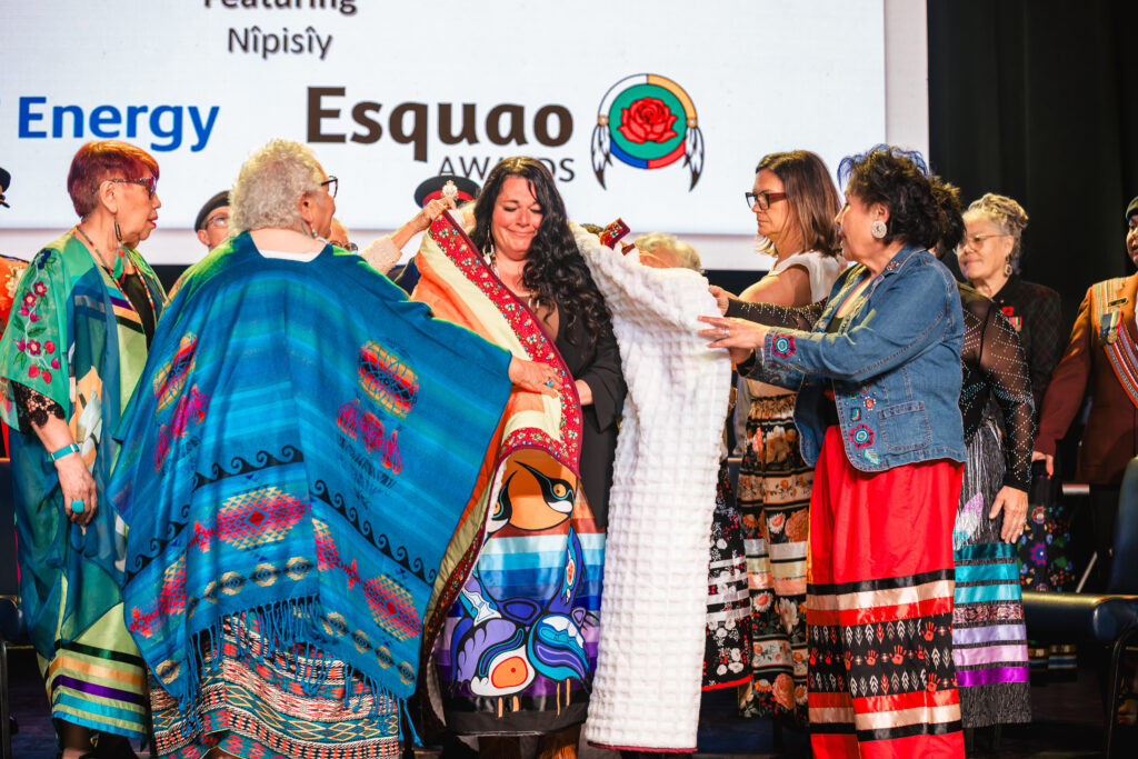 The Esquao Awards highlight the significant role Indigenous women hold in their home, in the healing and development of their communities, and in the building of Alberta. To date, 558 women from close to 100 communities have received Esquao Awards.
